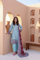 Experience modern elegance with this unstitched 3-piece suit in premium staple fabric, adorned with digital prints and chamki details – perfect for a graceful everyday look.