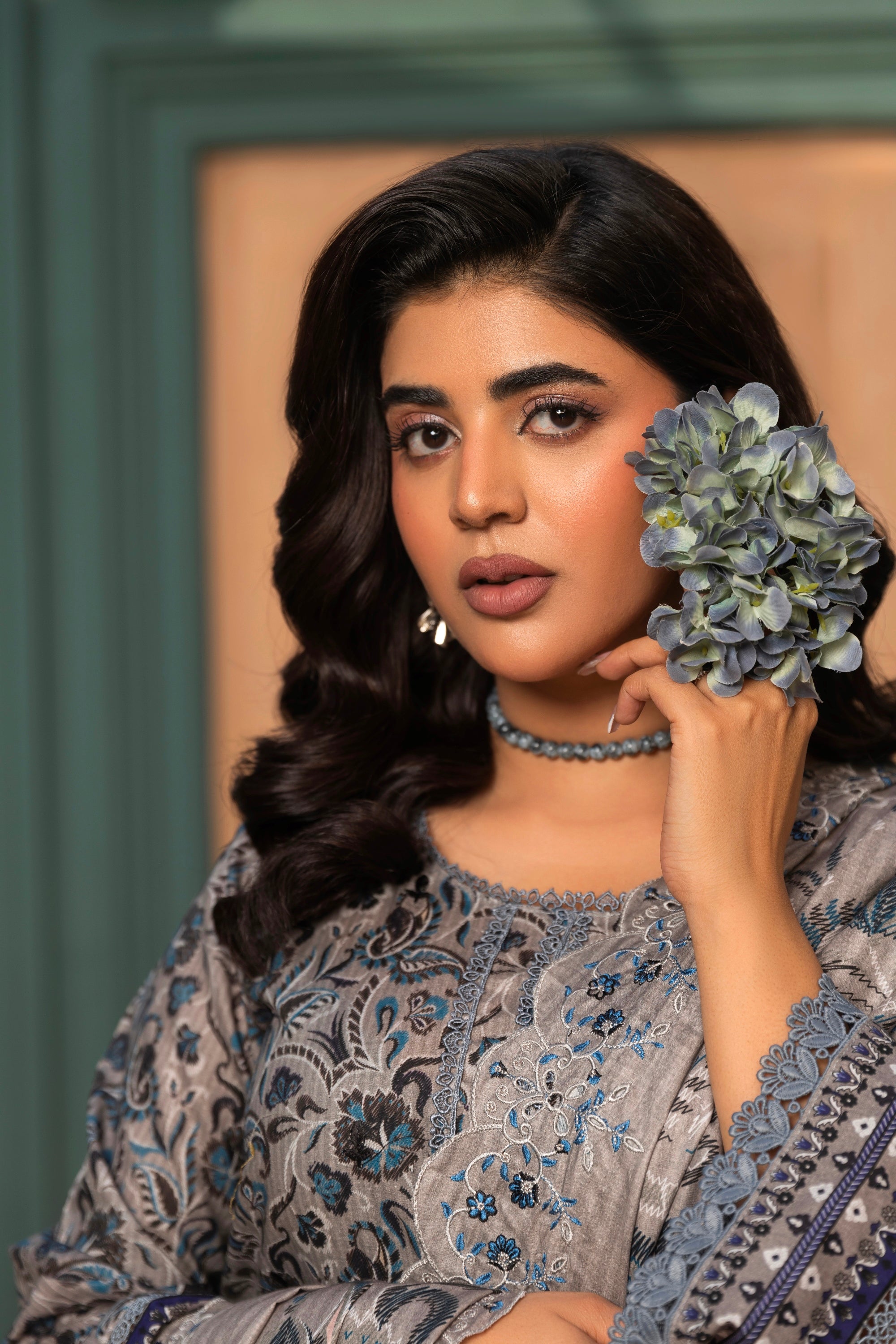 Digital Printed & neckline Embroidery Cambric Shirt