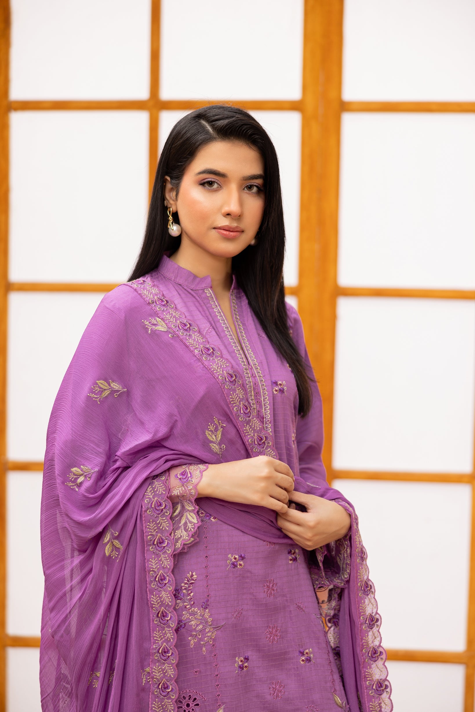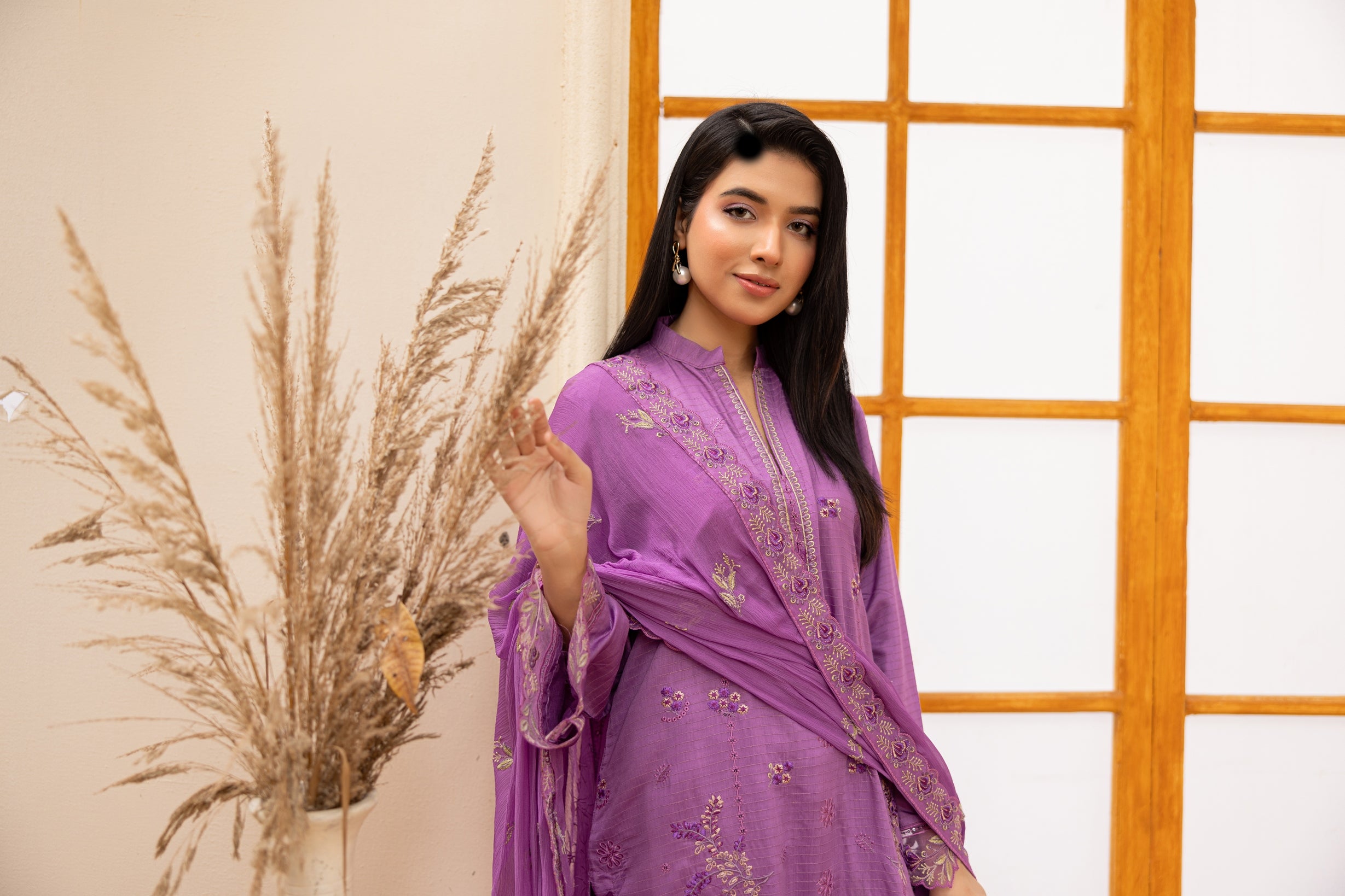 Apni shan aur nazakat ko ubhariye Elegance ke saath — Viscose Tilla Dora fabric par royal embroidery aur bamber chiffon dupatta ke saath yeh jora hai classy, graceful aur festive look ke liye perfect choice .