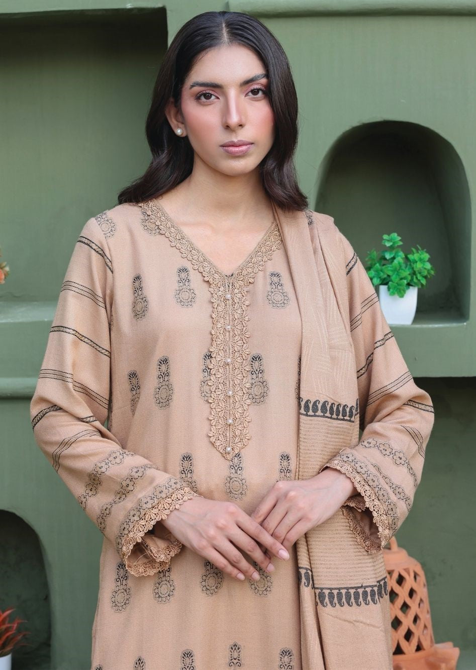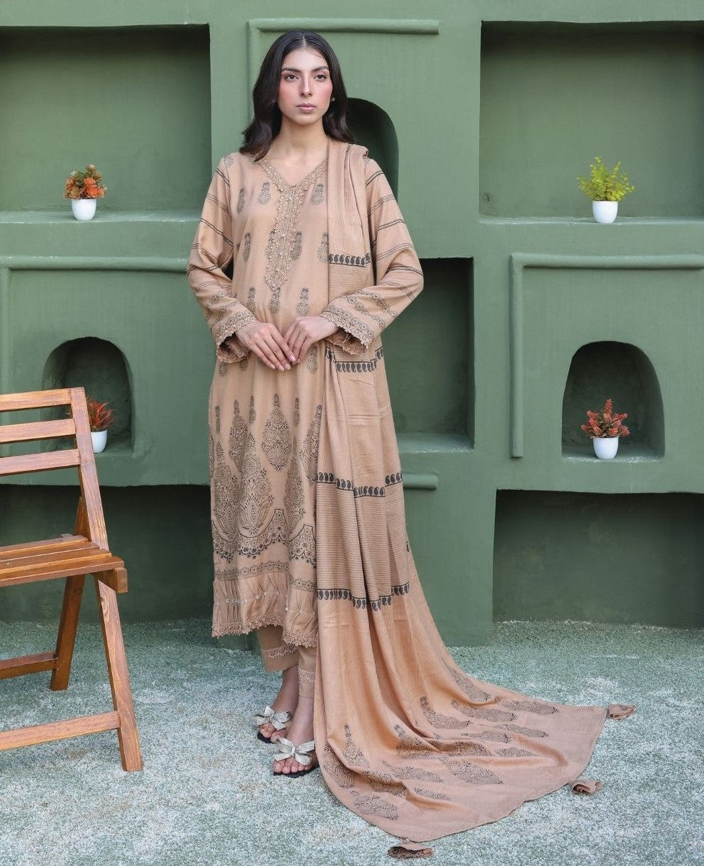 Step into elegance with this stunning unstitched 3-piece ensemble, featuring rich crystal velvet Jacquard Dhanak embroidery. Paired with a luxurious matching shawal and plain dyed trouser, this timeless outfit is the epitome of winter sophistication .