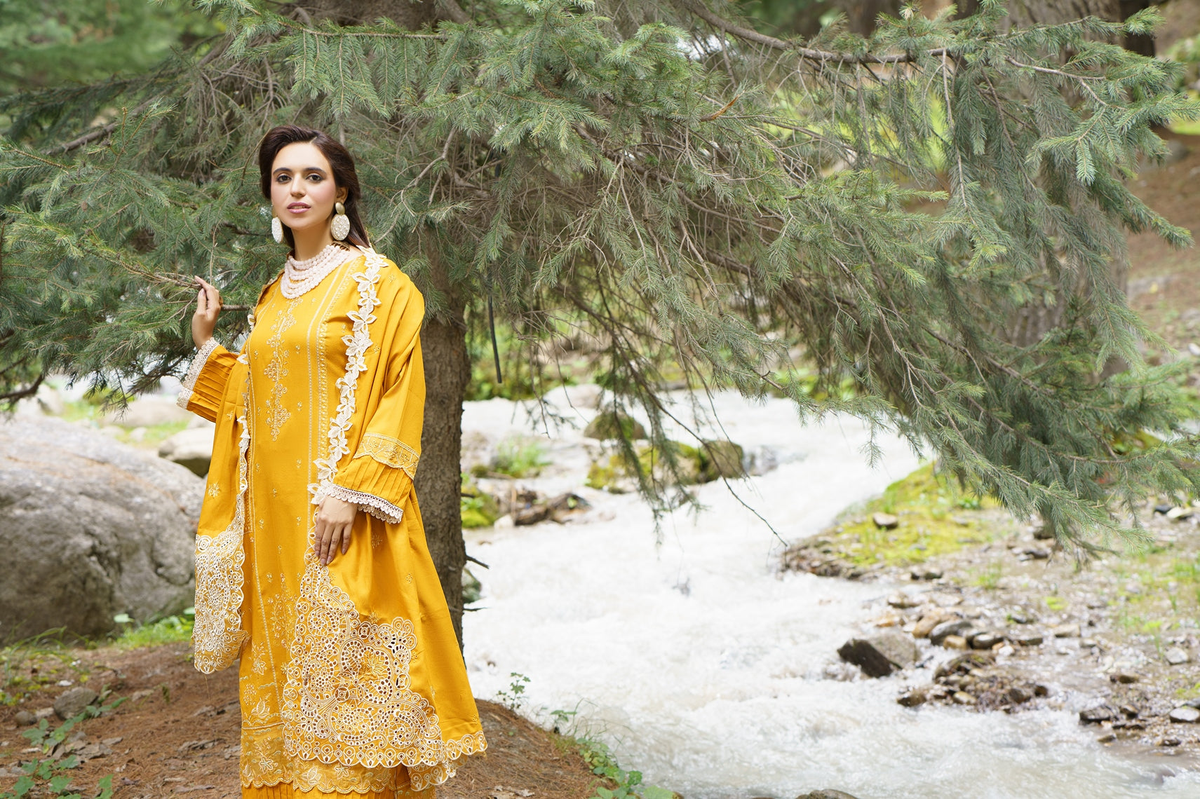Upgrade your wardrobe with Lamisah Pakeezah Chamki Dhanak suit. Featuring luxury embroidery, organza detailing, and premium four-side embroidered dupatta, this dress is perfect for Pakistani festive wear, designer unstitched suits, and winter wedding collections .