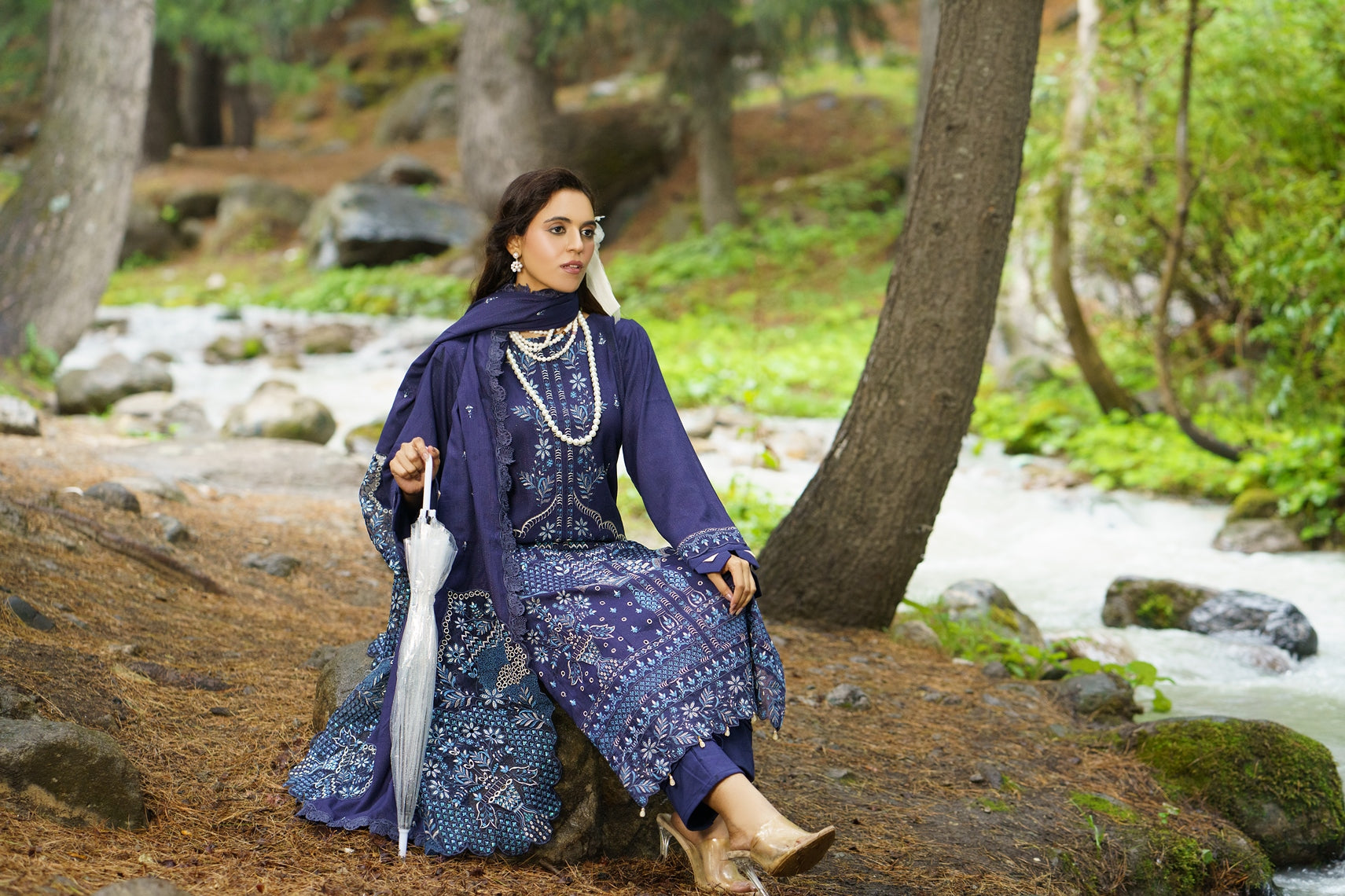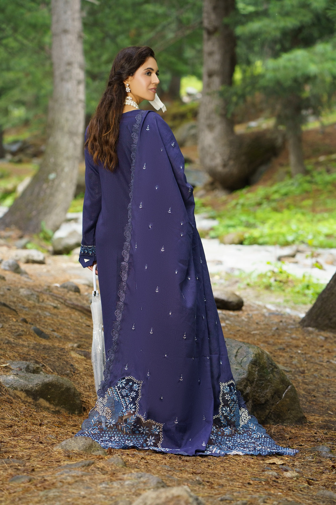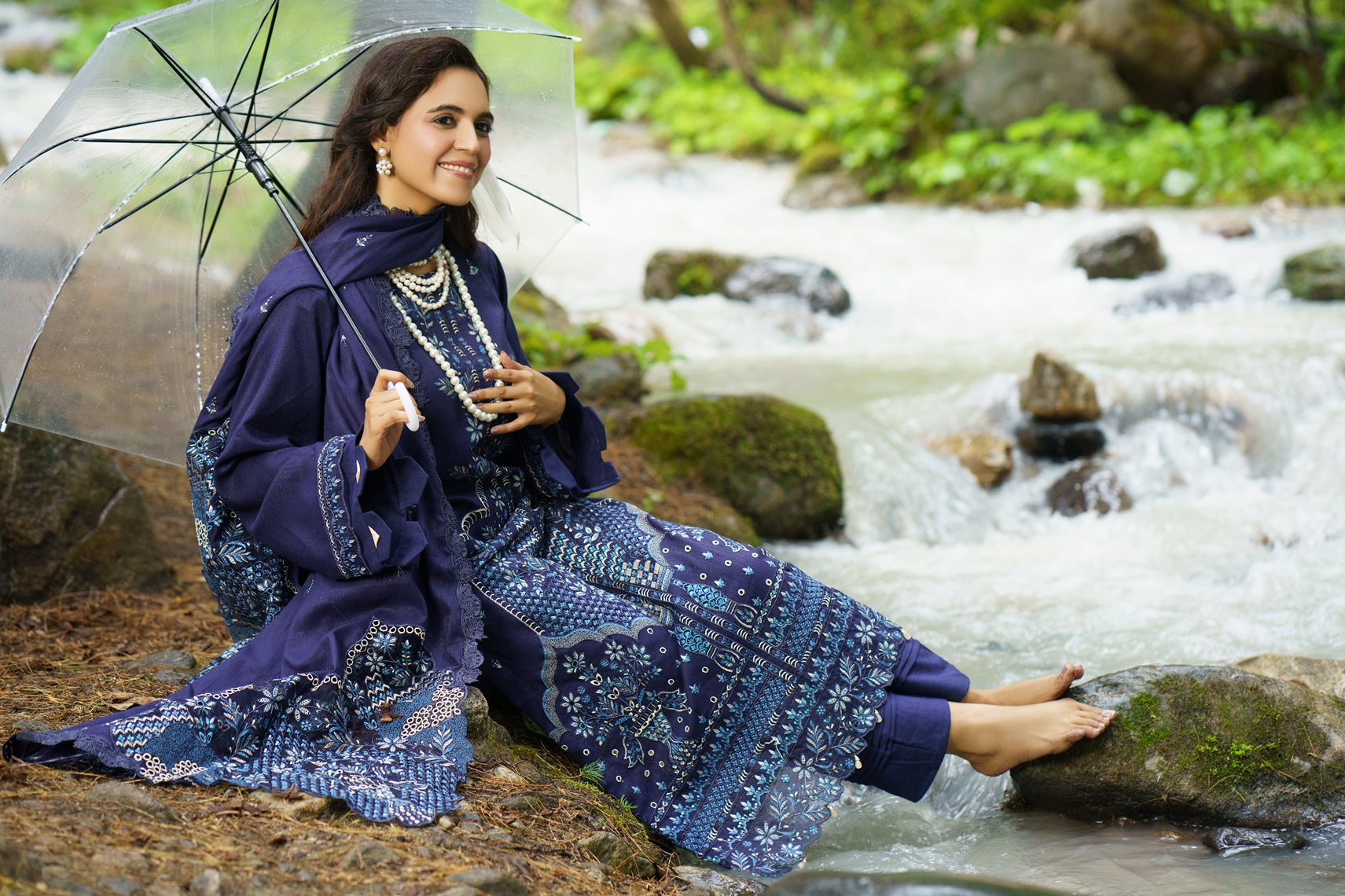 Upgrade your wardrobe with Lamisah Pakeezah Chamki Dhanak suit. Featuring luxury embroidery, organza detailing, and premium four-side embroidered dupatta, this dress is perfect for Pakistani festive wear, designer unstitched suits, and winter wedding collections .