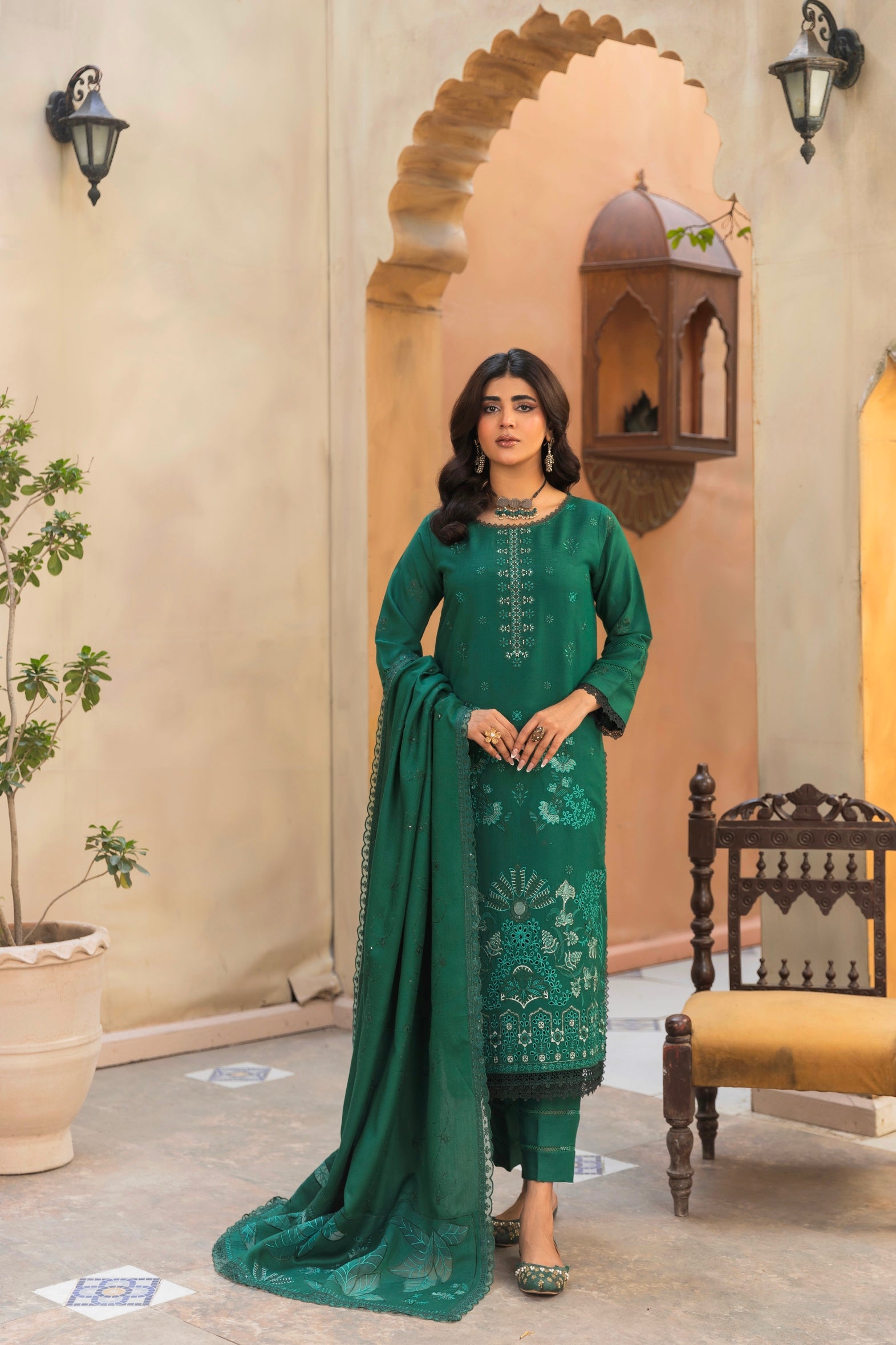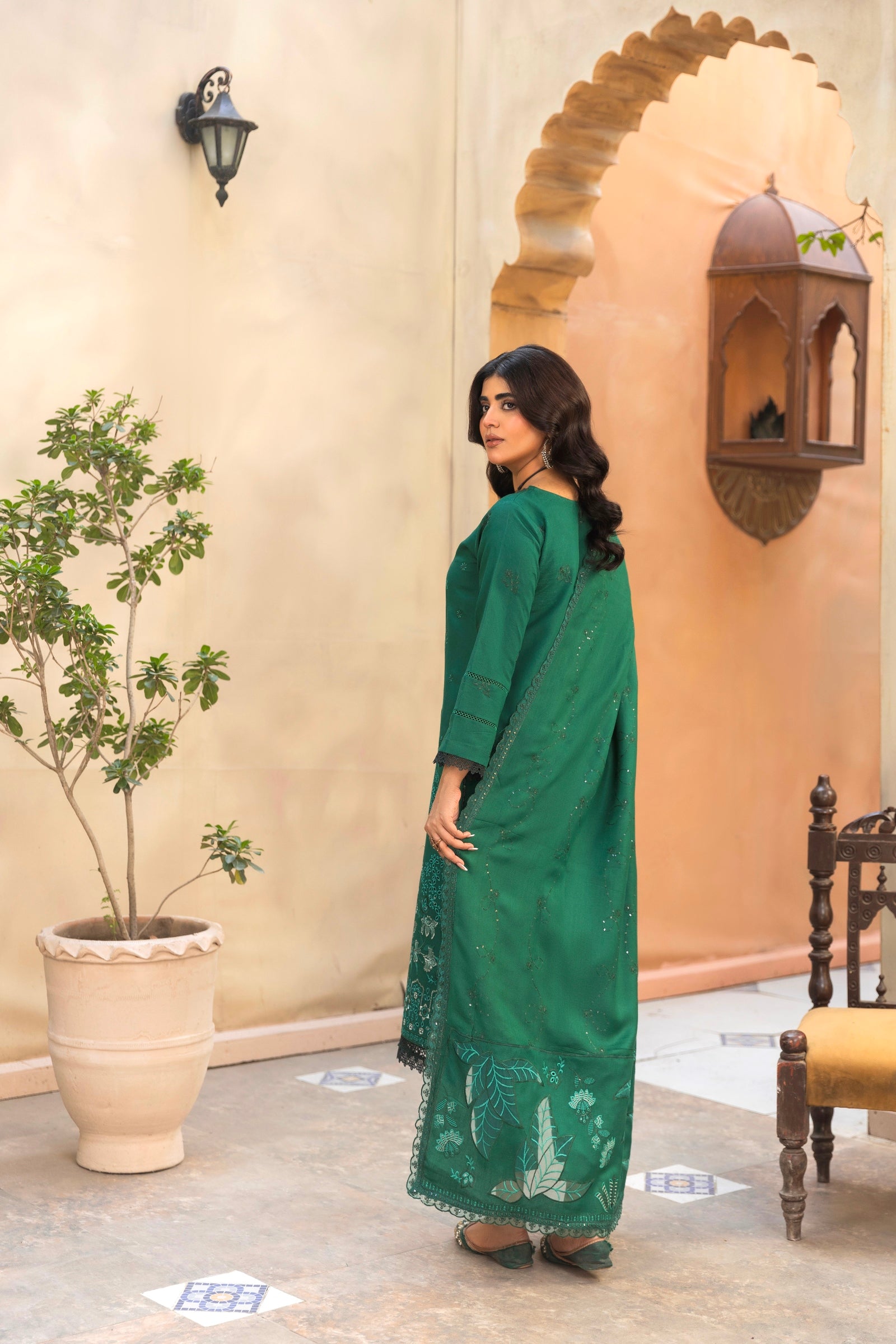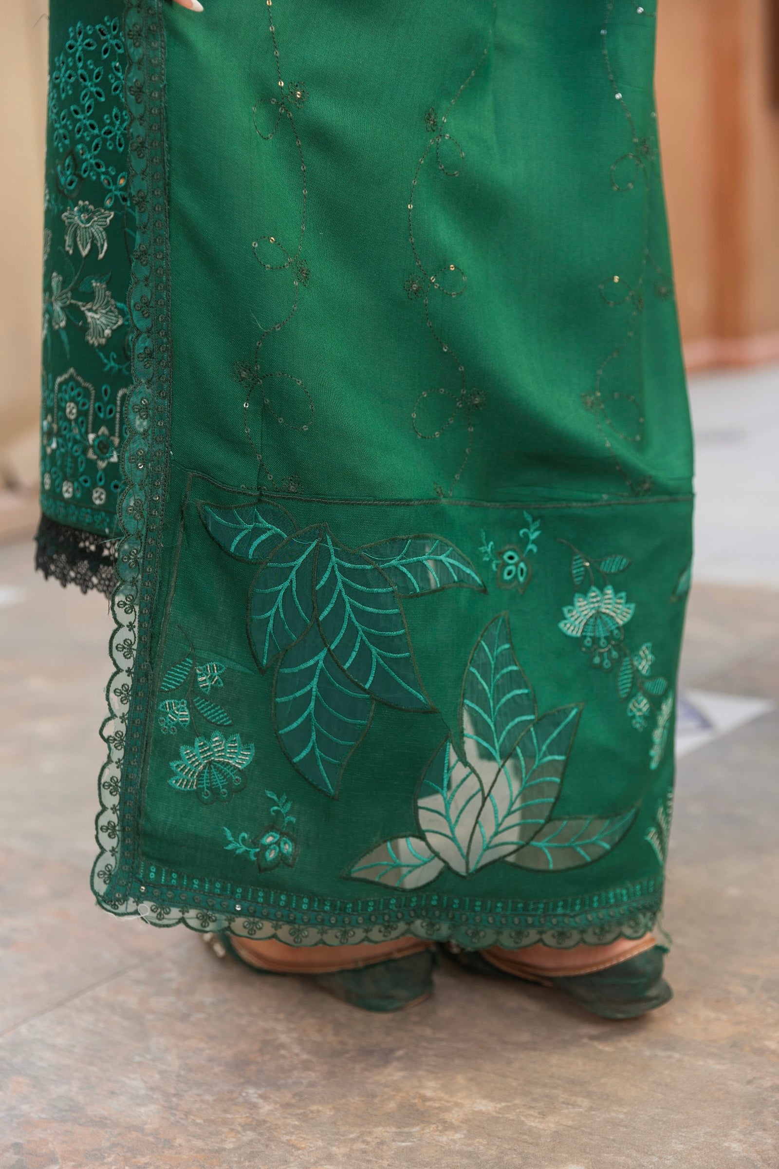 Leather Peech Luxury Applic Embroidery Dupatta