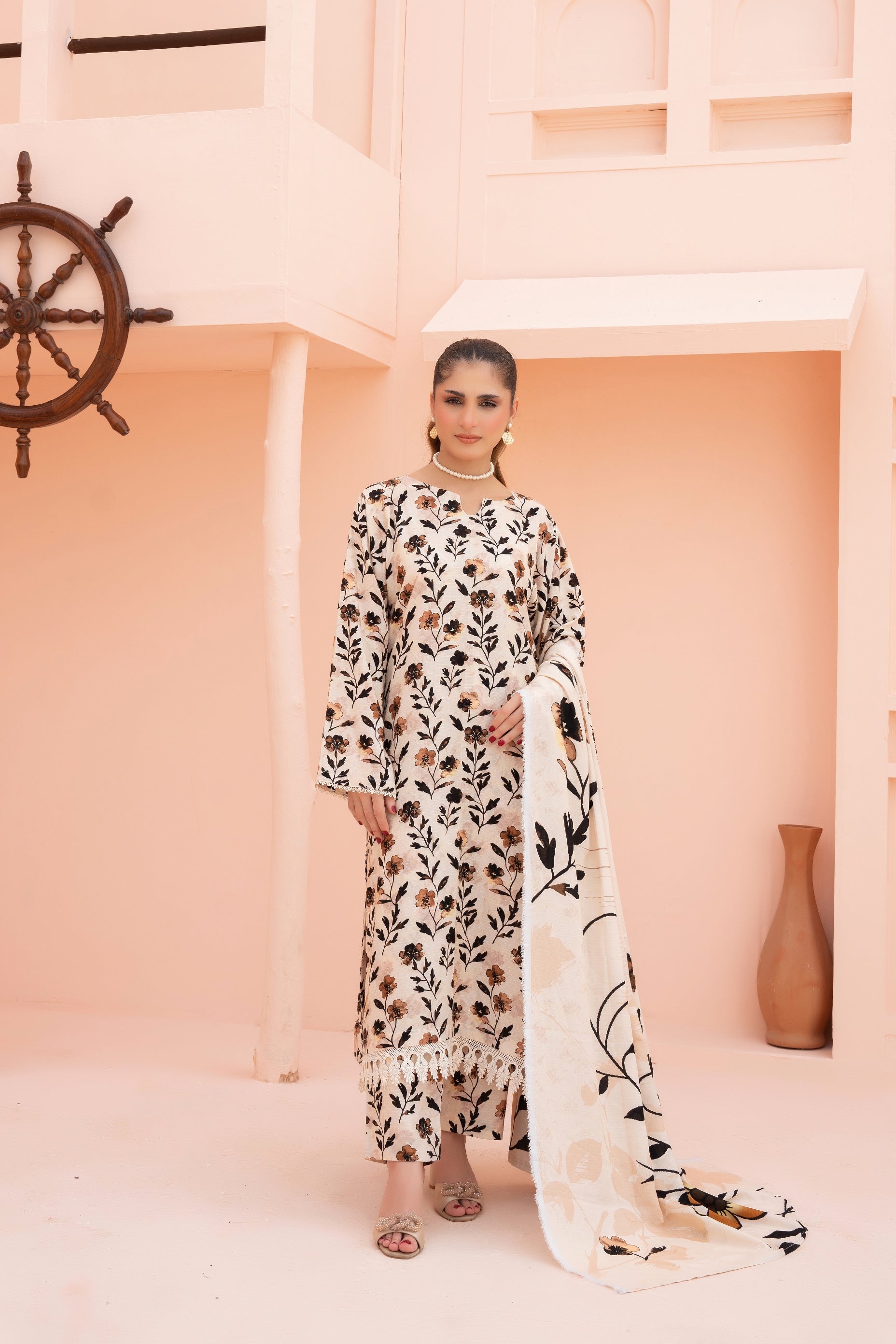 FloraDigital Printed Staple Bana Dora by Lamisah – Unstitched 3-Piece